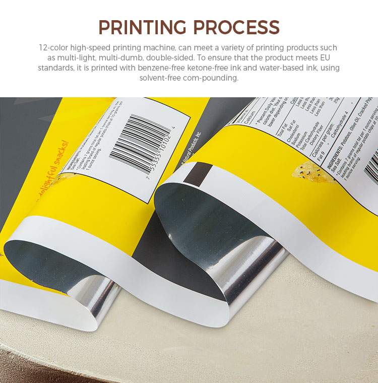12-color high-speed printing machine can meet a variety of printing products such as multi-gloss, multi-matte, and double-sided. To ensure that the product meets EU standards, benzene-free and ketone-free inks and water-based inks are used for printing, and solvent-free composite is used.