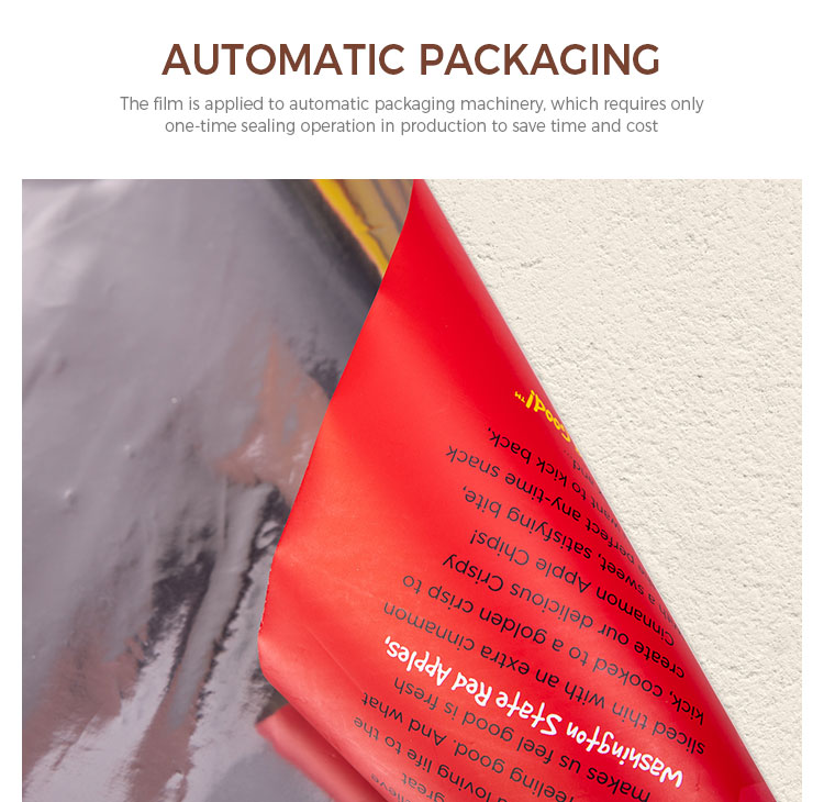 Roll film is used in automatic packaging machinery, and only one-time edge sealing operation is required in production to save time and cost.